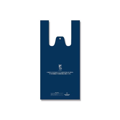 生物由来の有機資源を原料としたバイオマス成分を25%含んだレジ袋です。中身が透けにくい紺色。バイオマスマーク取得済みで、「プラスチック製買物袋有料化制度」の対象外とすることが可能です。 |
