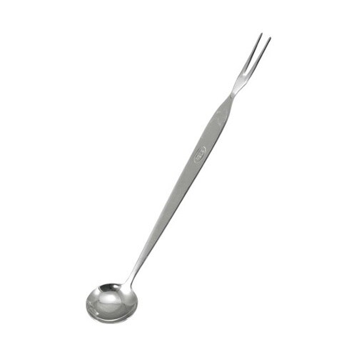 ちょっとした味見に便利な長柄のスプーン&フォークです。5ccの計量機能のついたスプーンと煮え具合を確認に便利なフォークが付いています。 |