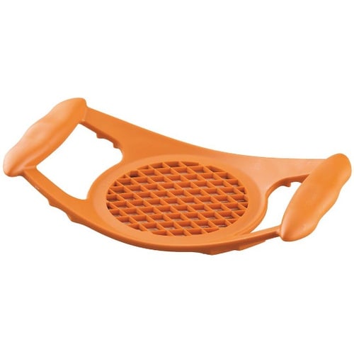 蒸したじゃがいもを皮つきのまま一気に潰せます押すだけで片面に皮だけ残り、潰れたじゃがいもの出来上がります。熱い蒸したじゃがいもの皮をむくのに便利です。 |