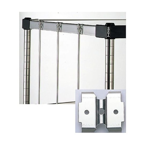 取り付けの際には棚板側面にレンドルで穴を開けて下さい。ボルト、ナットは付属していません。ボルト穴の径はφ7mmです。ソリッドエレクターの側・背面にロッドやレッジを取り付けるための専用金具です。 |