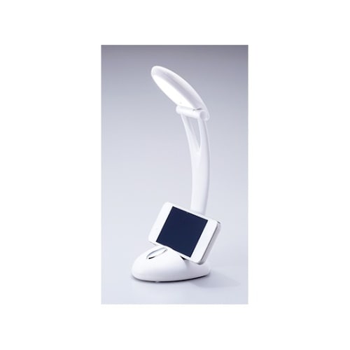 軽量・コードレスのスタンドライトです。本体部にスマホが置けます。ヘッド部分は上下に180°の角度調節が可能です。 |