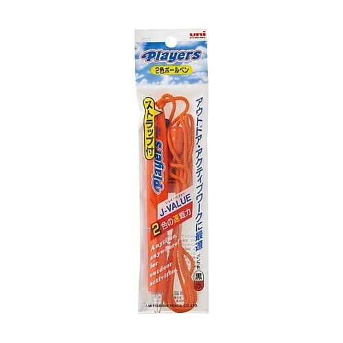 両手がふさがっている時や、移動中など、どんな状況でも軽快に身につけられるストラップ付。便利な2色ボールペン。 |