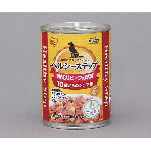 アイリスオーヤマ ヘルシーステップ 10歳以上用 角切りビーフ&野菜 375g φ75×103mm P−HLC−10KB P−HLC−10KB 1缶 A069-8573