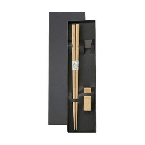 サイズ:箸・23cm、箸置・5×1.4cm | 材質:木、ウレタン | 原産国:箸・日本、箸置・ベトナム | 単位:1個
