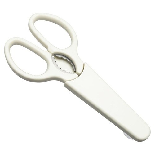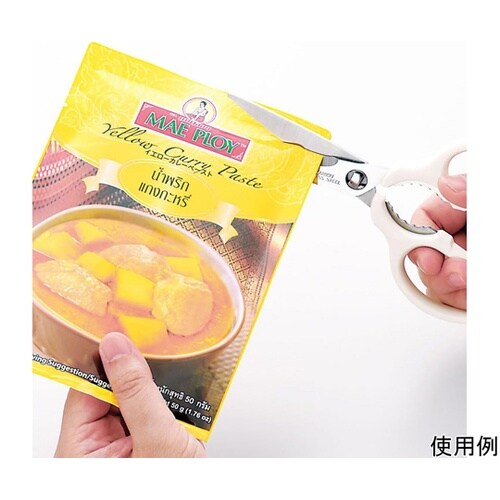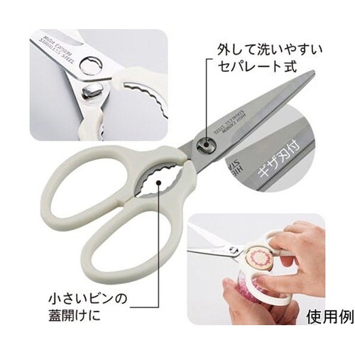 使い勝手のよい、ちょびっとミニサイズのキッチンバサミ。昆布・海苔などの刻み切りや、レトルトの開封に。滑らず切れるギザ刃が付いています。小さいビンの蓋開けにも使えます。外して洗いやすいセパレート式。 |