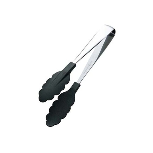 ノンステック加工のフライパンや鍋類を傷つけないナイロン樹脂製。抗菌剤が入って衛生的に使っていただけます。トングも色分けの時代。 |