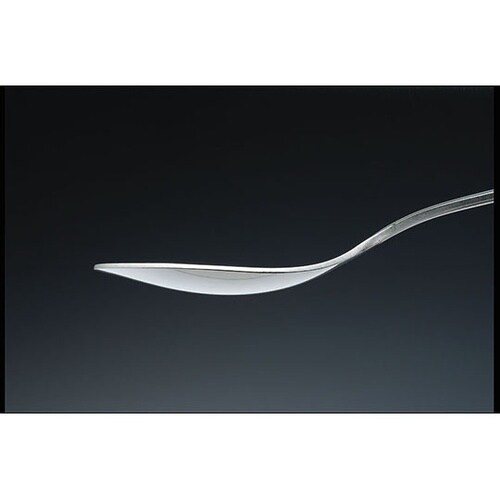 介護用・学校給食用カトラリー#4400シリーズケアスプーン形状すくい部先端部を通常の湾曲形状より浅い形状にしました。食べ物がスプーン(皿)に残りにくくなりました。