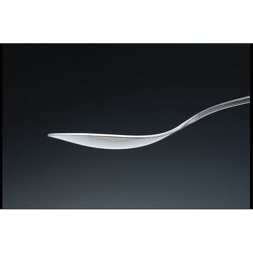 介護用・学校給食用カトラリー#4400シリーズケアスプーン形状すくい部先端部を通常の湾曲形状より浅い形状にしました。食べ物がスプーン(皿)に残りにくくなりました。