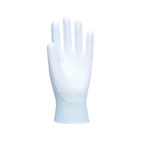 手のひら側のウレタン樹脂コーティングで、部品などがスベりにくいです。繊維からの発塵を抑えるために、長繊維のウーリーナイロン編手を使用しています。伸縮性に優れて手にフィットし、細かな作業に便利です。 |