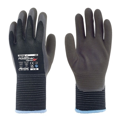 天然ゴムをコーティングしているため、引き裂きに強く、しなやかで作業性の良い手袋です。塩化ビニール製の手袋に比べ、低温でも柔らかさを保ちます。裏パイル編のため、防寒保温性に優れています。 |