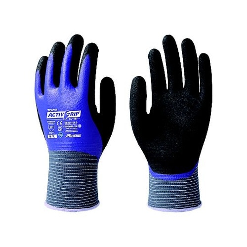 特殊スベリ止め(マイクロフィニッシュ)加工を施しており、油をともなう作業でも高いグリップ性能を発揮します。ニトリルゴムをコーティングしているため、油や突き刺し、引っ掻きに強く、耐摩耗性に優れています。 |