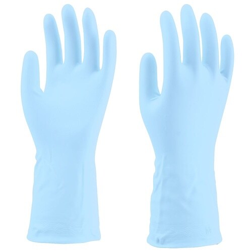 塩化ビニール製のため、天然ゴム製の手袋に比べて家庭で使われる洗剤や油に強い手袋です。手にフィットして指先感覚が自然なうす手タイプです。 |