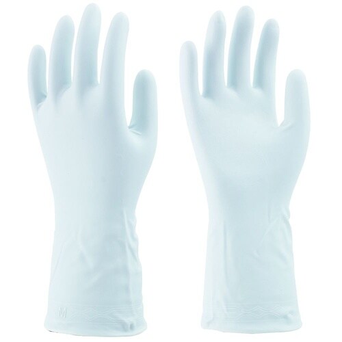 塩化ビニール製のため、天然ゴム製の手袋に比べて家庭で使われる洗剤や油に強い手袋です。手にフィットして指先感覚が自然なうす手タイプです。