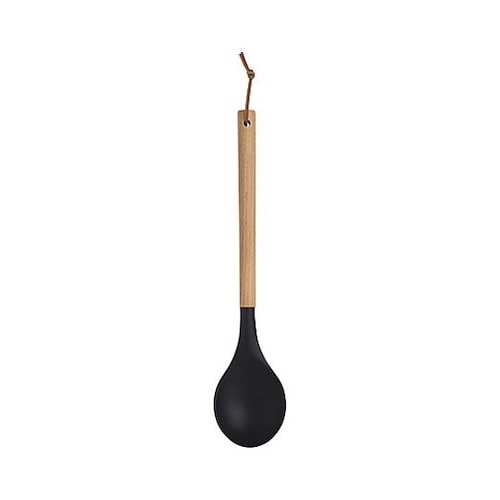 シンプルモダンなキッチンツールシリーズ。柄は手になじみやすい天然木、先端は耐熱性の高いシリコンゴムなので鍋やフライパンを傷つけにくいです。柄には吊り下げ用の紐を標準装備。 |