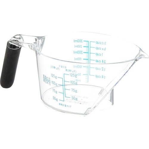 上から見ても計れる計量カップ。電子レンジ使用可能。見やすい傾斜目盛り。 |