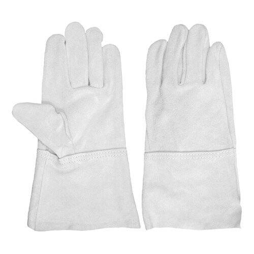 溶接時の火花を防ぎます。厚めの牛床革を使用し強さを重視しています。動きやすい中袖タイプ。手の甲の縫い目を内縫いにして糸の焼き切れを防止します。 |