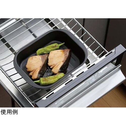 魚焼きグリルをオーブンのように使って調理!耐熱温度の高い「鉄製」だから、焼き物料理に適しています。揚げ物等の温め直しもカリッと仕上がります。蓋付きだから、ふっくら蒸し焼きもできます。 |