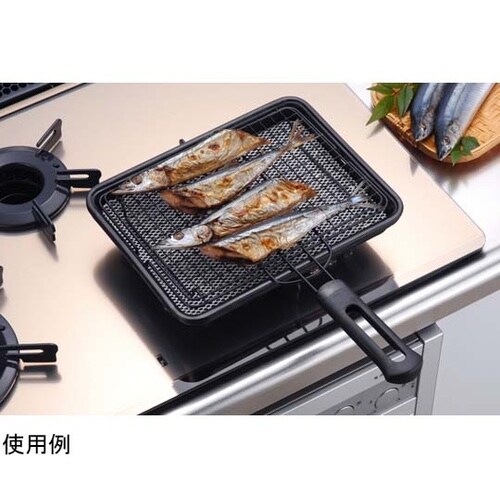 中アミ部はセラミック入りタイプなので炭火焼感覚のおいしい焼き上がり。ガス火専用。サイズ:413×312×55mm。重量:900g。生産国:中国。 |