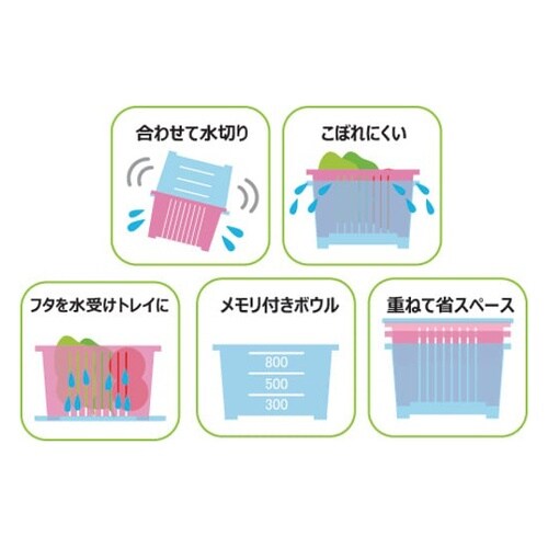 浅ザル&深ザルがセットになったアクティ4点セットザルで野菜を洗ってそのまま電子レンジ調理ができます。また各ボール・ザルは重ねることができますので、調理の下ごしらえにも便利です。 |