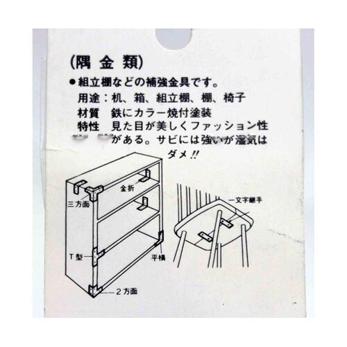 見た目が美しくファッション性があります。机・箱・組立棚・棚・椅子などの補強金具です。取り付けは確実に行ってください。 |