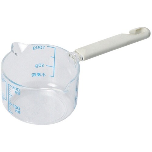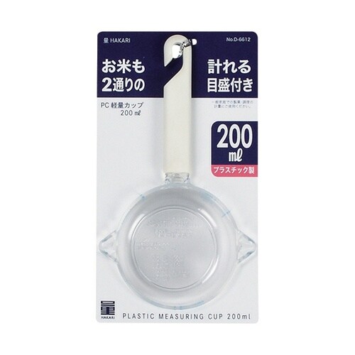 お米も計れる2通りの目盛付。液体・お米の両方がはかれる表示です。左右どちらからでも注ぎやすい両口付き。 |