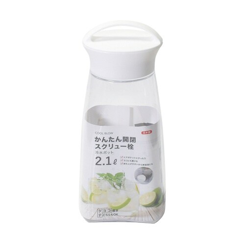 かんたん開閉スクリュー栓冷水ポット。タテ置きヨコ置きどちらも可能。広口で洗いやすい。 |