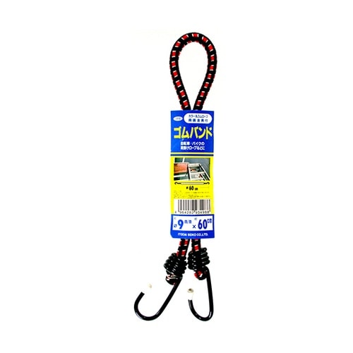 糸代製鋼 カラー丸ゴムロープ両端金具付き 赤 9φmm×600mm 63−7929−06 1本 A06A-1818