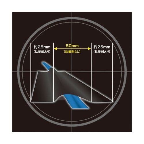 中央部50mmに粘着剤がついていないため、コード類に粘着剤がつきにくいです。テープ貼り付け後もコード位置の微調整が可能です。手で簡単に切れ、のり残りが少ないです。 |
