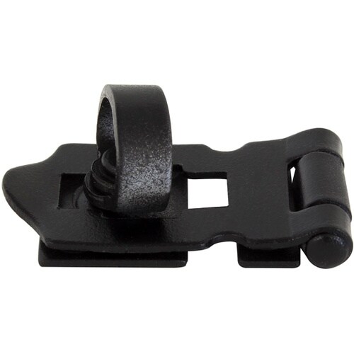 南京錠で施錠できる防犯型です。仕上げがツヤ消しの黒です。物置や倉庫の木製から道具箱までの締め具に使えます。取り付けの際、木部の割れやネジの破損を防ぐためキリで下穴を開けてください。 |