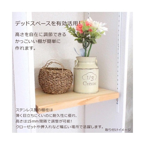 ステンレス製で耐久性にすぐれています。面付けで取り付けすることができます。この棚支柱にはWKTシリーズ『ステンレス棚受』をご使用ください。 |