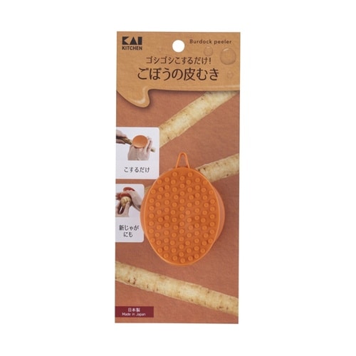 面倒な皮むきが簡単に!じゃがいもやごぼうの表面に商品をこすり付けるだけで、面倒な皮むきが簡単にできます。日本製。じゃがいもの芽取り付き。 |