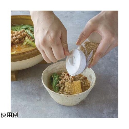料理にすりたてのゴマがかけられる。料理にすりたてのゴマがかけられる卓上用ごますり器です。日本製。お好みで粗目と細目をハンドル部のダイヤルで調節することができます。 |