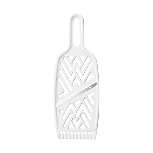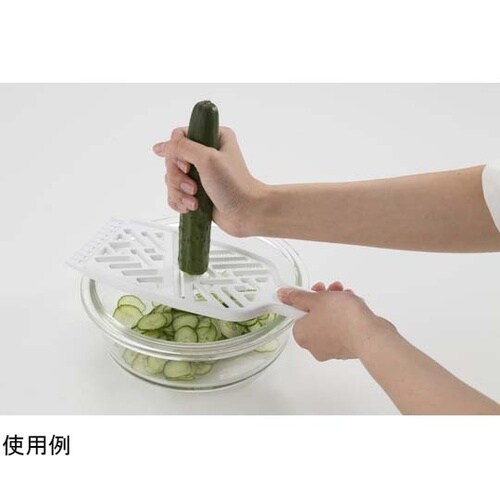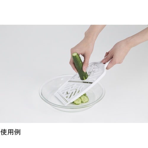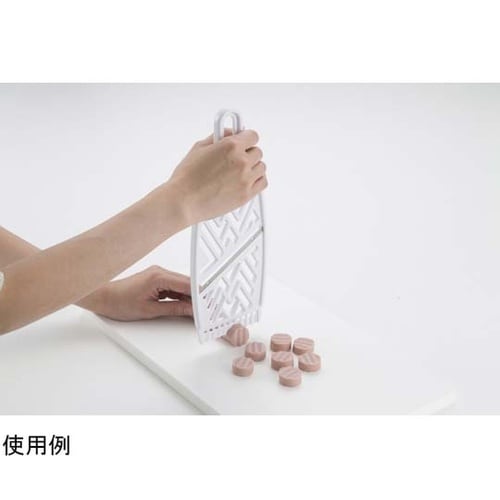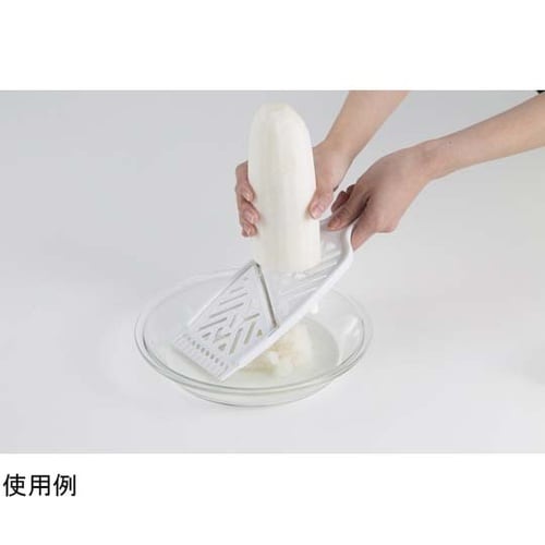 スライス・おろし・飾り切りができる。スライス・おろし・飾り切りができる、1台3役のスライサーです。日本製。表面はスライサーで、食材を約1mm(設計値)の厚さで調理することができます。 |