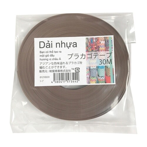 アジアンティストあふれるPPバンドの仲間で、カラフルなビニールみたいな帯状の紐で、かごを編んだりの手芸に向いてます。