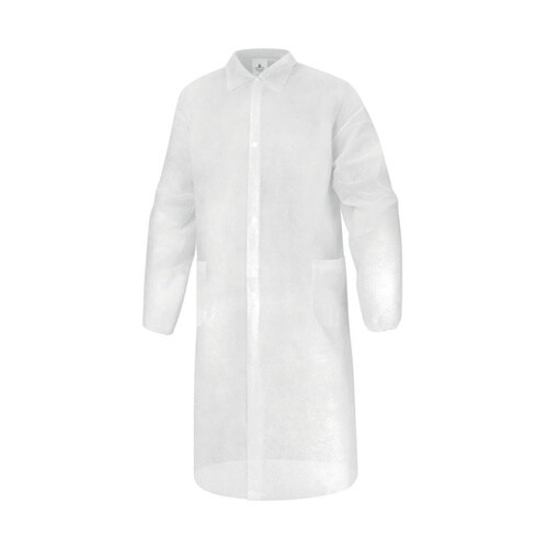通気性に優れたPP不織布(30g/m2)製の使い捨てボタンダウンシャツ型業服です。前面ボタンで簡単着脱、前面にポケット2か所あり便利です。清掃など汚れが気になる作業におすすめです。 |