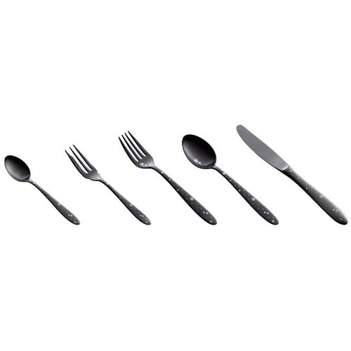 落ち着いた色あいが存在感を醸し出す、新しい発想から生まれたカトラリー黒酸化発色シリーズ「ステンレス酸化発色」という特殊技術を用いて、塗装や染料とは違う独特の色彩を実現しました。 |