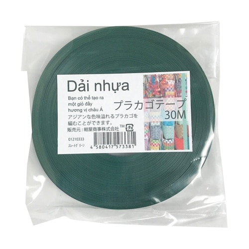 アジアンティストあふれるPPバンドの仲間で、カラフルなビニールみたいな帯状の紐で、かごを編んだりの手芸に向いてます。 |