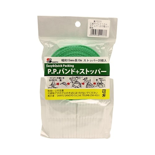 三友産業社 PPバンド+ストッパー 緑 10m×15mm HR−2233 HR−2233 1巻 A06A-7667