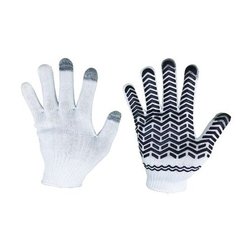 導電糸入りでタッチパネル操作が可能です。地球環境を考慮した天然ゴム滑り止め表地は耐久性のあるポリエステル繊維、裏地は吸汗性の高い綿で編んでいる特殊二重編みを採用。 |