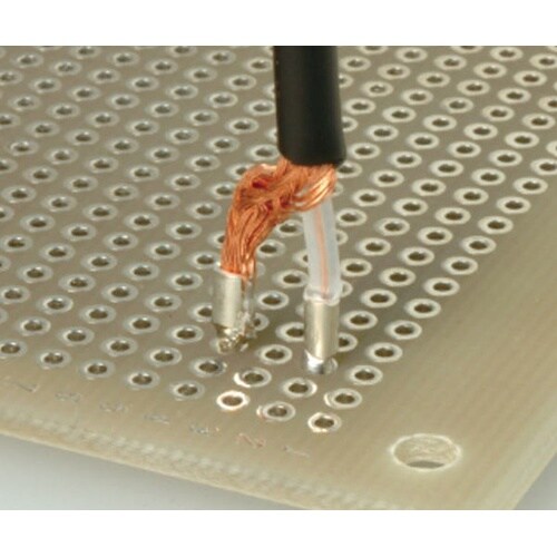 同軸ケーブルを直接プリント基板に差し込んではんだ付けすると、芯線が折れる事故が発生します。この製品を使用すると、芯線が折れる事故を防ぐことができます。 |