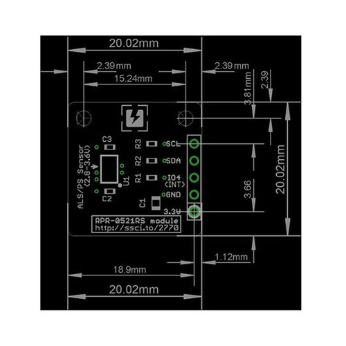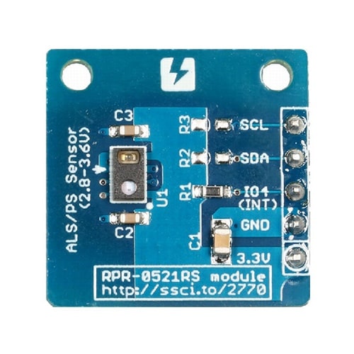 ローム社の照度/近接一体型センサRPR−0521RSを搭載したセンサモジュールです。 |