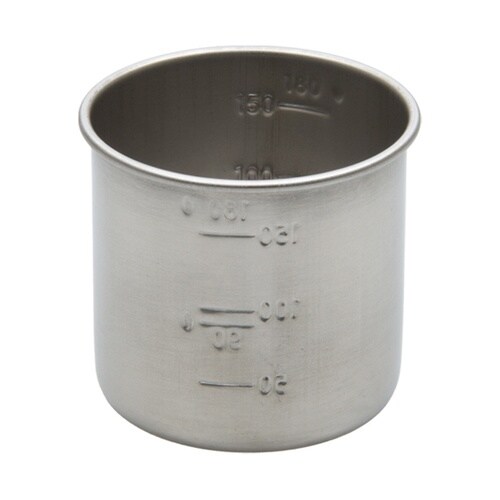 ステンレス製の衛生的な計量カップです。 |