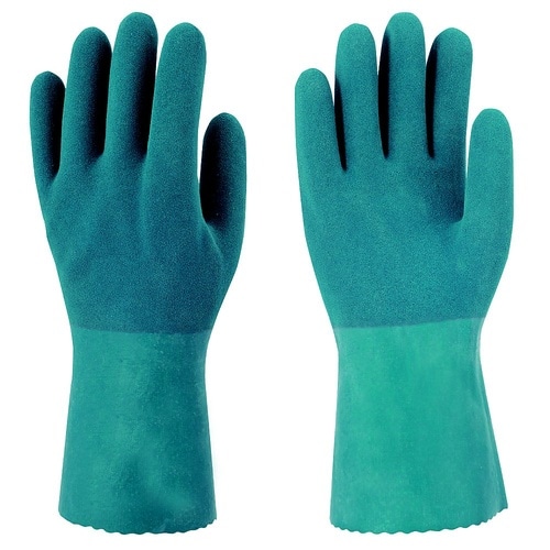 天然ゴムをコーティングしているため、引き裂きに強く、しなやかで作業性の良い手袋です。ピタッと吸着して掴みやすい特殊スベリ止め「マイクロフィニッシュ加工」を施しています。 |