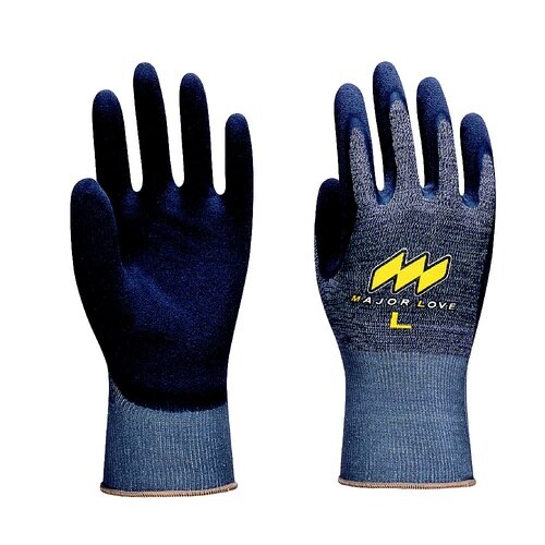 天然ゴムをコーティングしているため、引き裂きに強く、しなやかで作業性の良い手袋です。ピタッと吸着して掴みやすい特殊スベリ止め「マイクロフィニッシュ加工」を施しています。 |