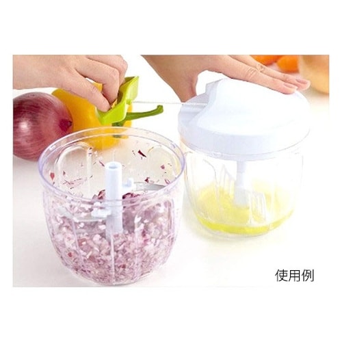 包丁&まな板不要!面倒なみじん切りが「ひもをギュンギュン引っ張るだけ」で簡単にできる!5枚の回転刃で食材を素早くみじん切りに切れ味も抜群。使用法はとっても簡単。食材を入れて蓋をしてヒモを引くだけ。 |