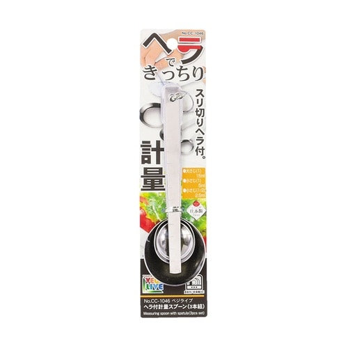 スリ切りヘラ付計量スプーン。大さじ、小さじ、小さじ1/2。食器洗い乾燥機対応。 |