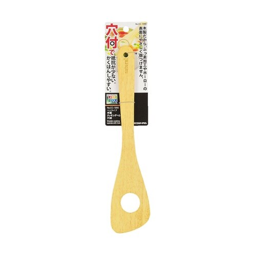 木製だから、ふっ素加工やホーローの表面にやさしい。穴付きで抵抗が少なく、かくはんしやすい。 |