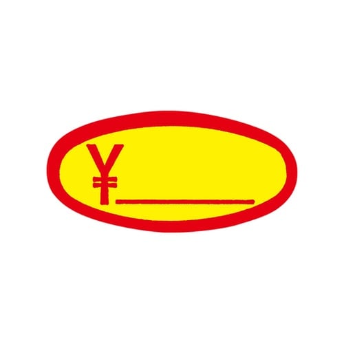 主に大ぶりのフルーツに表示することが多いため、この名が付きました。空きスペースに価格を記入します。黄べたに赤い縁取りで視認性はバツグンです。500枚入りの徳用商品です。 |