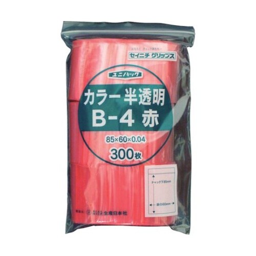 生産日本社(セイニチ) チャック付ポリ袋 ユニパック B−4 半透明赤 縦85×横60×厚さ0.04mm 300枚入 B−4−CR B−4−CR 1袋 A06A-9417