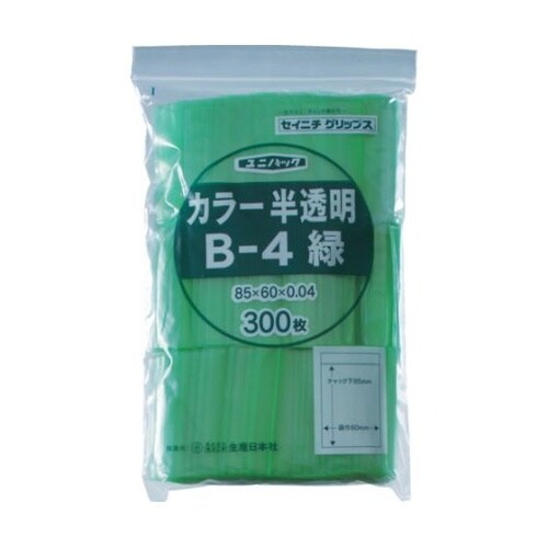 生産日本社(セイニチ) チャック付ポリ袋 ユニパック B−4 半透明緑 縦85×横60×厚さ0.04mm 300枚入 B−4−CG B−4−CG 1袋 A06A-9424